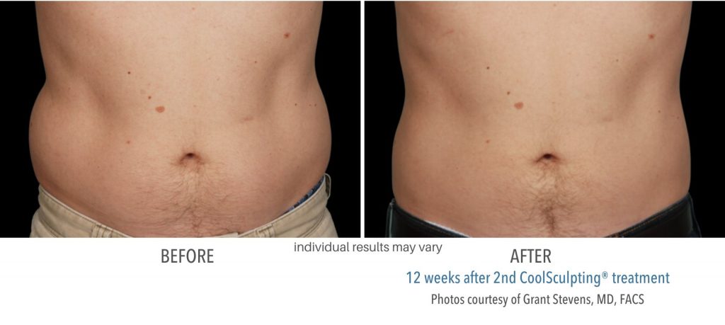 CoolSculpting before and after results show the body contouring power of freezing fat. As with any cosmetic treatment, results may vary. However, those shown in the before and after pictures are actual patients. Their outcomes stress the importance of choosing an expert to perform the technique sensitive procedure.